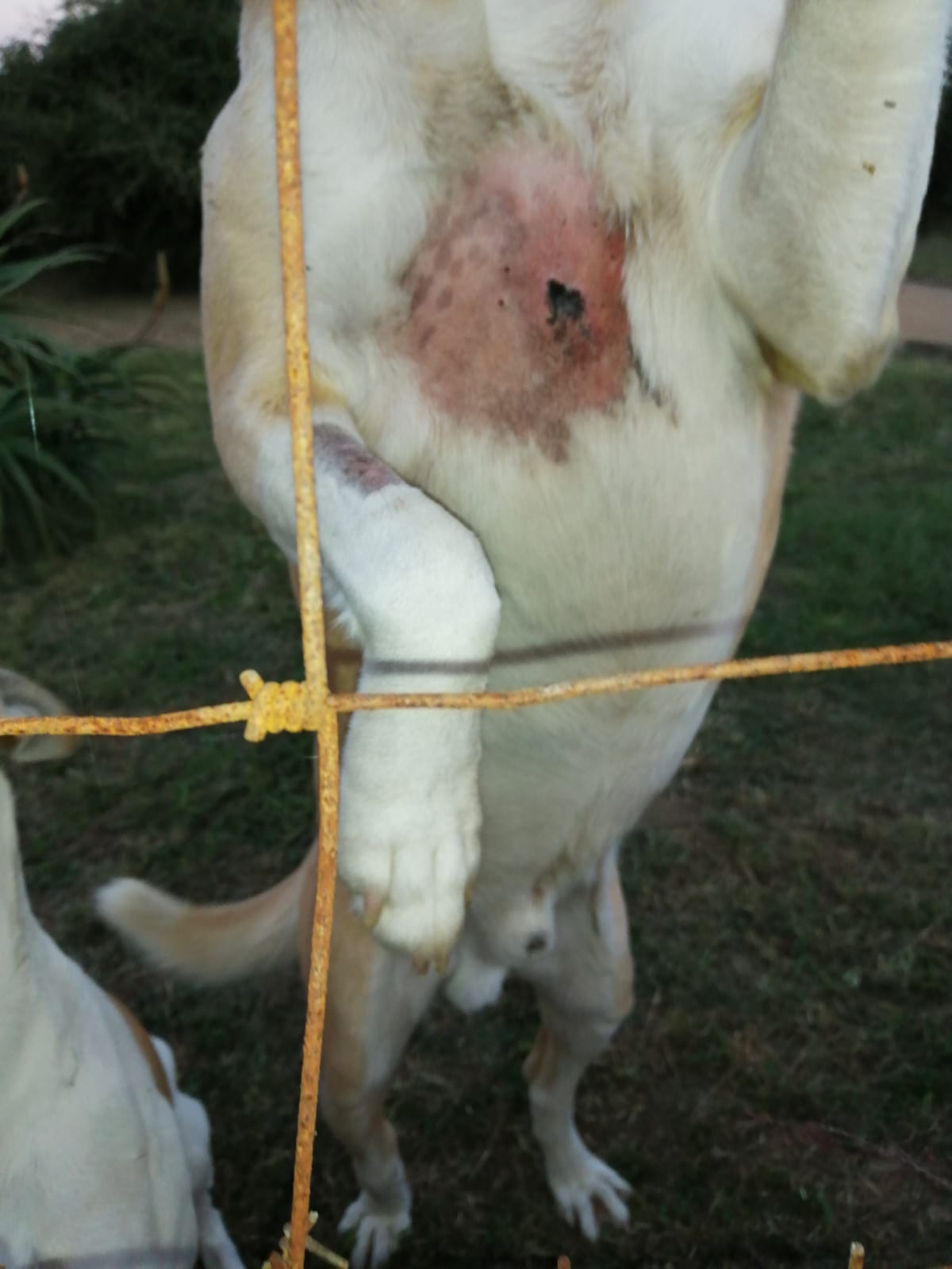 The dog remained at the surgery from the 16th to the 20th of May when we picked him up. We were astounded to see him bouncing along on the end of a lead and on the ride back he seemed relaxed and happy. Not, to my mind, a dog that showed signs of having been bitten by a Puff Adder only four days previously. You only have to look at photos and videos on the internet to see the devastating effect that poison, such as Puff Adder venom, can have on the flesh. They are not for the squeamish! This makes this case all the more amazing.